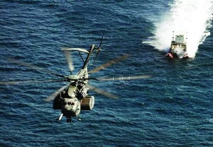 海灣戰(zhàn)爭中的1991年2月18日,作為美英聯(lián)合反水雷部隊旗艦的美國海軍塔拉瓦級兩棲攻擊艦“特里波利”號,因缺少專業(yè)裝備,被一枚伊拉克軍隊布放的錨雷炸開了一個4.8米×7.5米的裂口。隨后數(shù)小時,美海軍另一艘剛服役不久的宙斯盾巡洋艦“普林斯頓”號也觸雷,艦體被強大的爆炸力拋出水面,艦舯部裂開。