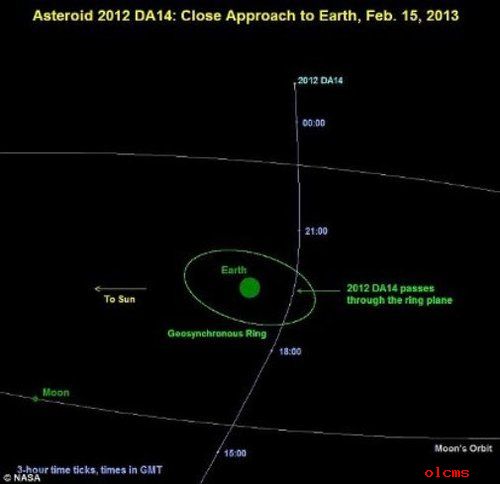 西班牙拉沙格拉(LaSagra)天文臺的天文學(xué)家稱,一顆新發(fā)現(xiàn)的小行星“2012DA14”號將于2013年2月15日接近地球,可能偏離其軌道,撞上地球同步通訊衛(wèi)星。