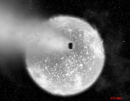 這是藝術(shù)家們畫的一幅印象派作品:熱木星行星 HD 209458b 在其父母恒星之前穿越。