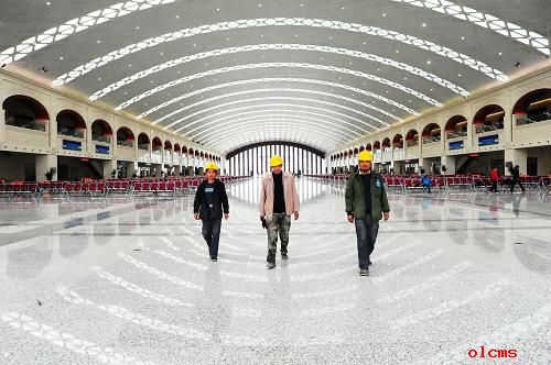 10月8日,工作人員走過(guò)鐵路哈爾濱西站候車大廳。