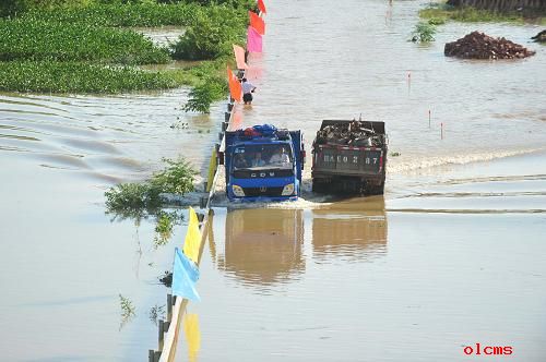 8月20日,在廣西南寧市西鄉(xiāng)塘區(qū)石埠街道辦石埠村,車輛在積水嚴(yán)重的公路上涉水前行。