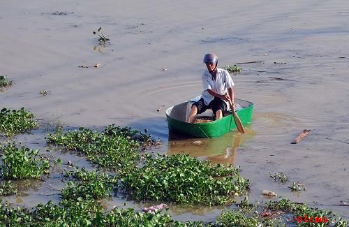 8月20日,在廣西南寧市西鄉(xiāng)塘區(qū)石埠街道辦石埠村,村民在積水嚴(yán)重的農(nóng)田路劃船前行。