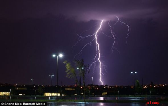 2009年8月16日,一道巨大的閃電照亮了堪薩斯州利納夏附近的夜空