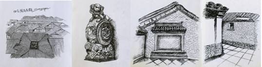 1.北京風情:配樂播放北京胡同素描圖,讓學生感受北京古樸的民風。