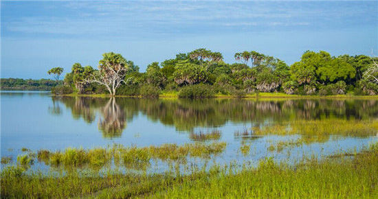賽盧斯大部分區(qū)域被濕地覆蓋,最有特點的是魯菲濟河北岸的5座鐘靈秀麗的湖泊,由東向西依次是姆齊齊瑪湖、思萬渡湖、恩澤拉卡拉湖、曼澤湖和坦噶拉娜湖。每座湖的大小不一,植被也有所區(qū)別,棲息的野生動物種類也有諸多不同之處。比如,姆齊齊瑪湖和思萬渡湖的周邊是一片濃密的森林,生活著數(shù)量繁多的黑臉長尾猴、大捻角羚、林羚、黑斑羚、河馬、大象、花豹和非洲野犬;恩澤拉卡拉湖和曼澤湖被高大的棕櫚樹包圍,是賽盧斯內(nèi)獅子、鱷魚、水牛、斑馬、角馬、麋羚、河馬最集中的區(qū)域;坦噶拉娜湖背靠貝奧貝奧山,湖邊還有幾眼溫泉,長流不息,終年恒溫。德國藝術(shù)家威漢姆·庫勒曾對賽盧斯的純凈和原始大加贊嘆,在日記中他描述賽盧斯?jié)竦氐拿?ldquo;好像夢境一般,超出了藝術(shù)所能描述的范圍。”1982年,賽盧斯被聯(lián)合國教科文組織列為世界自然遺產(chǎn)名錄。