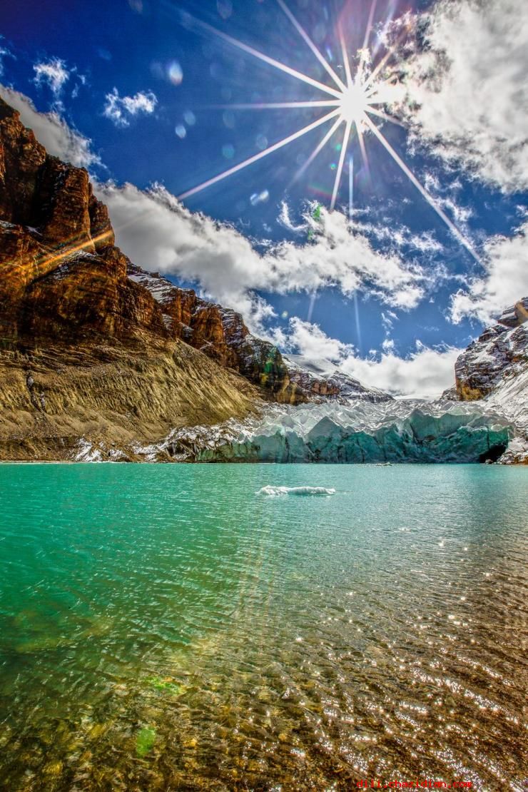 大概一個小時,終于走到冰川跟前,看著很近,高海拔走著吃力,實測海拔大概5400M,碧綠的湖水上還飄著未融化的大冰塊,我們都直接飲用了這湖里的水,冰冷,干凈。