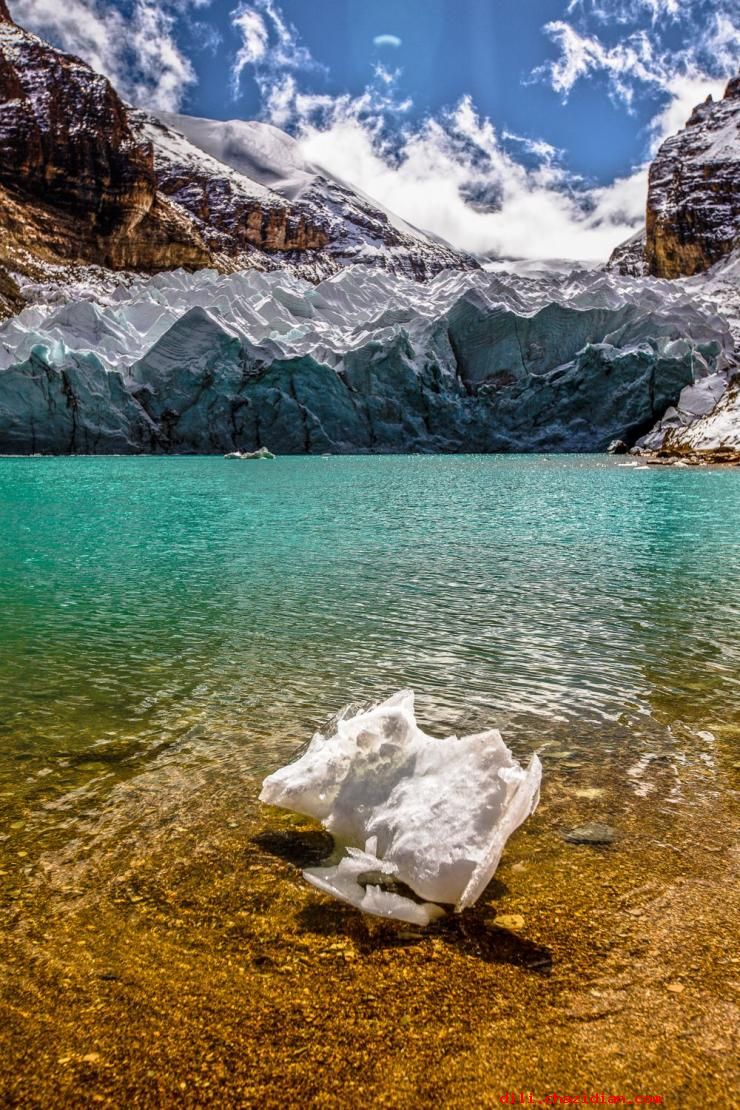 喜馬拉雅北坡的深處有很多冰川,位于西藏日喀則地區(qū)崗巴縣的曲登尼瑪冰川,去年秋天有幸深度去探索了一次,其實這里也是“西藏神水”礦泉水的水源地。大概位于崗巴縣至定日縣40KM的途中岔道往喜馬拉雅山脈方向。