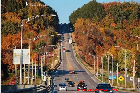 “楓葉大道”(Maple Road)是加拿大最著名的一條賞楓路線,從魁北克的東端開(kāi)始,沿著圣勞倫斯河曲折蜿蜒的向前延伸著,一直伸向尼亞加拉的西端,全長(zhǎng)約八百公里沿途經(jīng)過(guò)無(wú)數(shù)山丘、湖泊。每年秋天,當(dāng)?shù)缆穬膳缘臈魅~開(kāi)始漸漸變紅,整個(gè)區(qū)域都被楓葉染成絢麗的色彩。 晴朗的秋日,駕車自由馳騁在這條景致極美的公路上,仿佛是那片片楓葉在為你帶路~