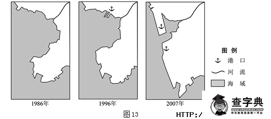 高考地理試題圖13示意我國南方某濱海城市局部海岸的變遷,讀圖回答問題。