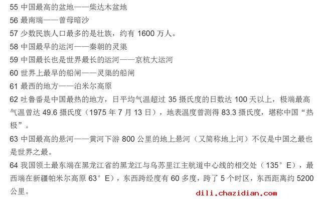 當(dāng)前位置:查字典地理網(wǎng) >趣味地理 >盤(pán)點(diǎn)中國(guó)地理之最