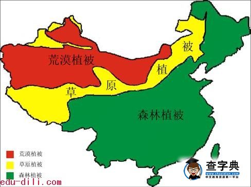 序為:森林植被—草原植被—干旱荒漠植被。此即為植被分布的經(jīng)度地帶性。