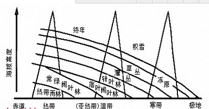 緯度、經(jīng)度與高度三個方向改變,植被也沿著這三個方向交替分布。