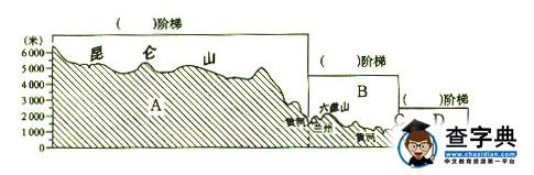 1.正確表示我國地勢變化的圖形是 ( )