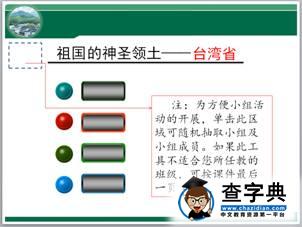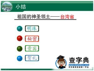 讓學(xué)生在書(shū)上圈出臺(tái)灣省主要的島嶼,了解臺(tái)灣省的范圍。