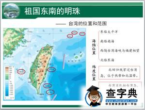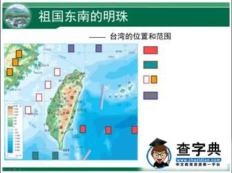 (1)能夠利用地圖準(zhǔn)確地說(shuō)出臺(tái)灣省的地理位置和范圍。