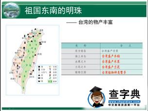 再次提問(wèn):臺(tái)灣是祖國(guó)東南的明珠,為什么是“明珠”?從而引出本小節(jié)第二部分學(xué)習(xí)內(nèi)容:臺(tái)灣的物產(chǎn)。
