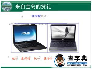 情景設(shè)計(jì):春節(jié)的時(shí)候,我收到了一個(gè)朋友的賀禮,結(jié)果發(fā)現(xiàn),這些賀禮的品牌全部來(lái)自于臺(tái)灣。展示賀禮,并告知學(xué)生,這些產(chǎn)品不但中國(guó)大陸有,世界上很多地區(qū)都有。由此說(shuō)明,臺(tái)灣的經(jīng)濟(jì)是以開(kāi)拓國(guó)際市場(chǎng)為著眼點(diǎn),以國(guó)際市場(chǎng)為導(dǎo)向,這種經(jīng)濟(jì)模式主要是面向臺(tái)灣省以外的市場(chǎng),我們將這種經(jīng)濟(jì)模式稱為“外向型經(jīng)濟(jì)”,從而引出本小節(jié)主要的學(xué)習(xí)內(nèi)容──外向型經(jīng)濟(jì)。
