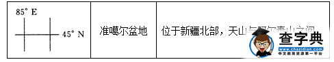 1.位置:80°E-90°E,42°N-50°N(85°E,45°N穿過盆地中部)。