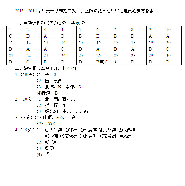 一、選擇題(下列各小題均有四個選項,其中只有一項是...2015—2016學(xué)年度高中一年級上學(xué)期地理期末試卷