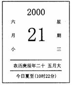 解析:日歷所示的時(shí)間是6月21日,北半球的夏至日,太陽(yáng)直射北回歸線(xiàn)。這時(shí)北京時(shí)間是10點(diǎn)22分,而太陽(yáng)直射的經(jīng)線(xiàn)的地方時(shí)是12點(diǎn),這條經(jīng)線(xiàn)應(yīng)該在北京的東側(cè),比北京時(shí)間早1小時(shí)38分,其經(jīng)度應(yīng)該是144030'E,太陽(yáng)直射點(diǎn)的坐標(biāo)是(23026'N,144030'E)。珠穆朗瑪峰在北半球,夏季氣溫高,山上的冰雪融化得多,雪線(xiàn)的海拔高度將會(huì)升高。
