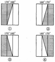 解析:本題涉及到晨昏線(xiàn)、區(qū)時(shí)換算等知識(shí)點(diǎn),有一定的難度。該題的突破口是題干中飛越晨昏線(xiàn)的時(shí)間“當(dāng)?shù)?日19時(shí)”,由“19時(shí)”可以判斷飛機(jī)飛越的是昏線(xiàn);又由“19時(shí)”的日落(昏線(xiàn))可知,此時(shí)北半球晝長(zhǎng)于夜(18時(shí)日落晝夜等長(zhǎng))。從四幅圖中找出符合“昏線(xiàn)”且晝長(zhǎng)于夜(看昏線(xiàn)的傾斜方向)兩個(gè)條件的為②。