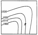 解析:風是指大氣的水平運動,其方向受三種力的影響,即水平氣壓梯度力、地轉偏向力、摩擦力。當三種力平衡時,近地面風向與等壓線成一夾角,北半球右偏,南半球左偏。